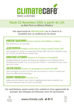 Launching in November 2024, Climate Café® Paris La Défense creates a new space to #DrinkChatAct on climate in the heart of the business district in Paris.